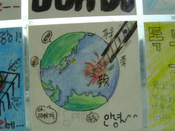 ■ 韓国のガキ達が描いた反日の絵が1000枚ほど駅で展示され大好評